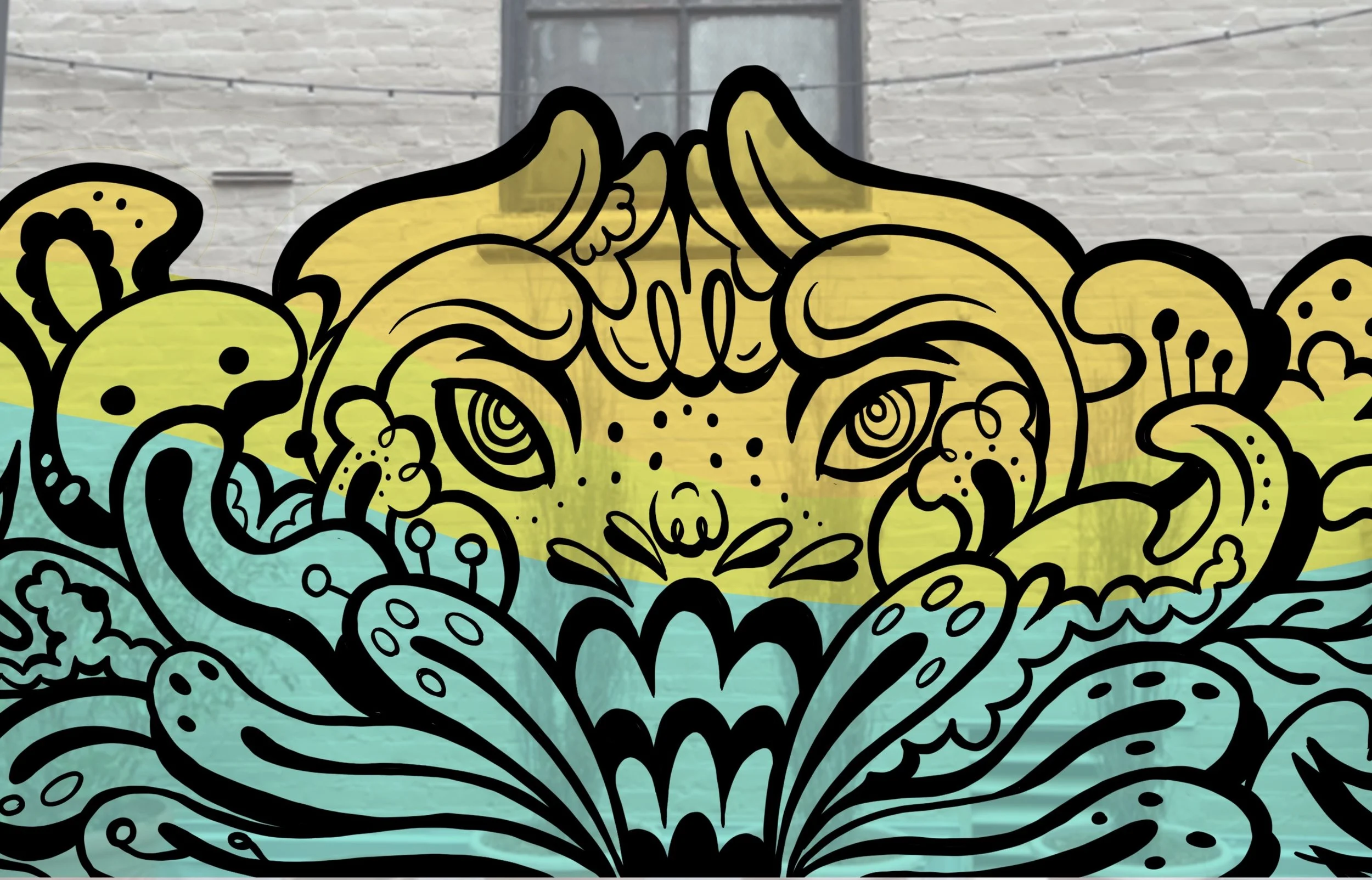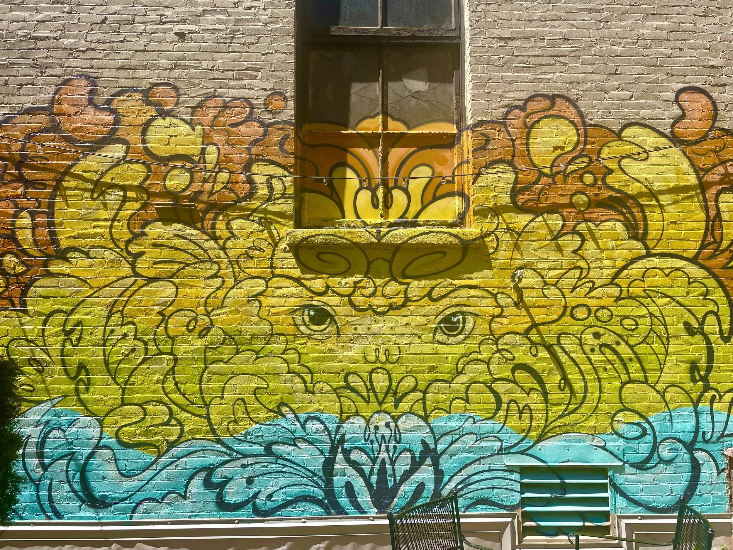 This unique mural was commissioned by the Gibson Lofts HOA for their community courtyard. The project began in 2022 and grew over the following two summers, with new layers and elements added each year. I was given complete creative freedom on the design, allowing me to respond intuitively to the space and its surroundings. The result is a freestyle mural that transforms the courtyard into an oasis in the heart of downtown Cincinnati—a vibrant, evolving reflection of its urban environment.