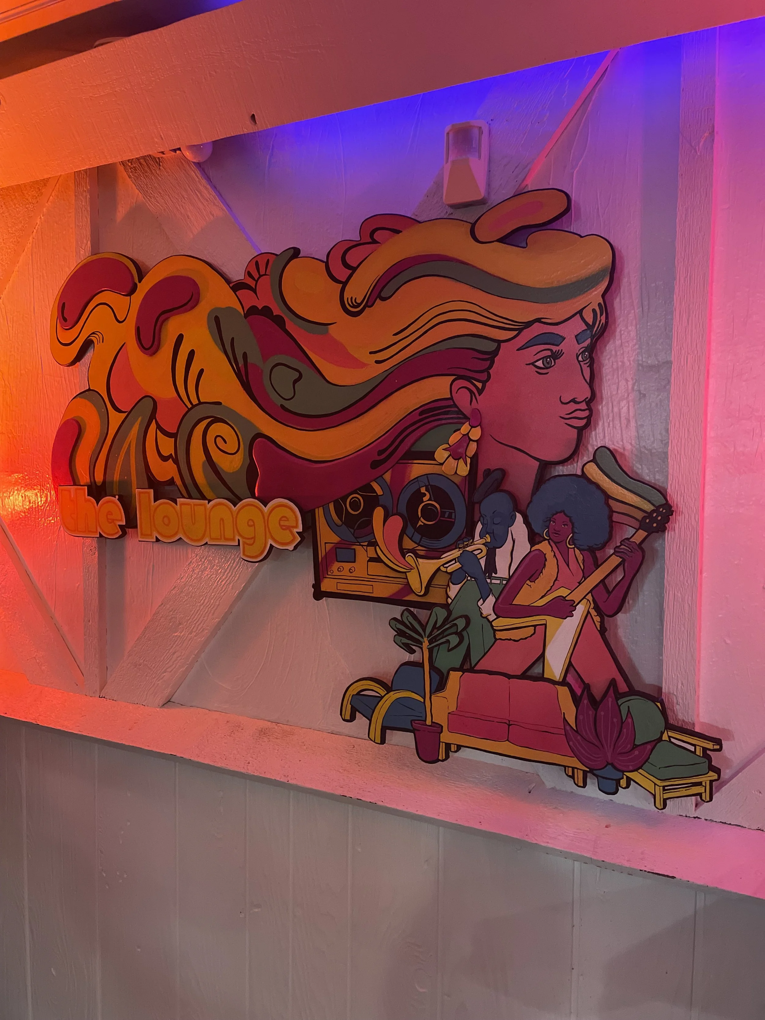 To commemorate the opening of Northside’s, the lounge, I was commissioned to create an art piece that would also fulfill a branding function. The lounge features a distinctive psychedelic 1970s-inspired decor, and this artwork was designed to enhance the overall ambience of the establishment. Given the importance of live music within the lounge's framework, it was essential to incorporate this element into the final piece.